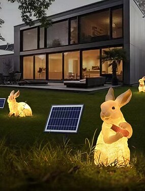 Estatua solar de conejo, linda estatua para exteriores para jardín, encantadora escultura de conejo decorativa para patio, balcón, jardín, adorno de césped.