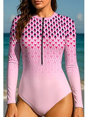 Mujer Regular Camiseta Protección Solar Surf Traje de surf de una pieza Traje de baño Degradado Abstracto Bloqueo de color Cerrar con sujetador incorporado Acolchado extraíble Protección solar UV