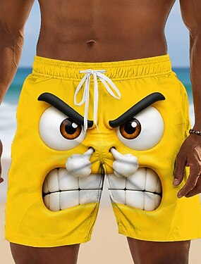 Hombre Dibujo 3D Gracioso Cara enojada Boxers de Natación Trajes de baño, bañadores cortos Pantalones de Surf Media cintura Retro Antiguo vacaciones en la playa Bolsillos laterales Forro de malla