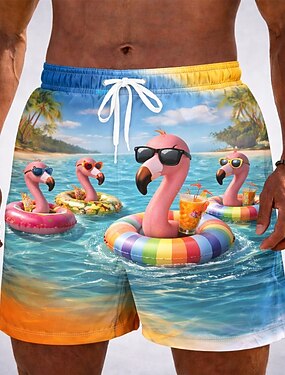 Hombre Animal Caricatura Flamenco Boxers de Natación Pantalones de Natación Pantalones de Surf Media cintura Gracioso Hawaiano vacaciones en la playa Bolsillos laterales Forro de malla Cintura