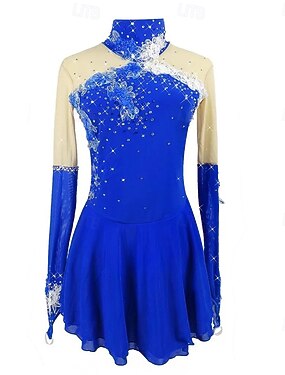 Vestido de patinaje artístico Mujer Chica Patinaje Sobre Hielo Vestidos Azul Retazos Malla Alta elasticidad Entrenamiento Competición Ropa de Patinaje Clásico Cristal / Strass Manga Larga Patinaje