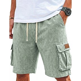 Hombre Pantalones de lino y algodón Pantalones Pantalones de verano Pantalones anchos Pantalones de playa Bolsillo Color sólido Comodidad Transpirable Longitud total Casual Diario Exterior Vacaciones