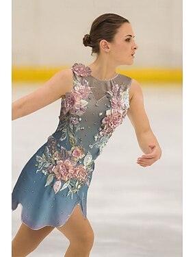 Malla de gimnasia rítmica para mujer y niña, para patinaje sobre hielo, teñido, alta elasticidad, para competición profesional, con cristales y diamantes de imitación, sin mangas.