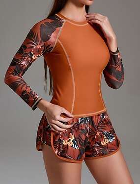 Mujer Camiseta Protección Solar Surf 2 Piezas Trajes de baño Retazos Cerrar Protección UV Elástico Manga Larga Bañadores Traje de baño Surf Submarinismo Natación Primavera
