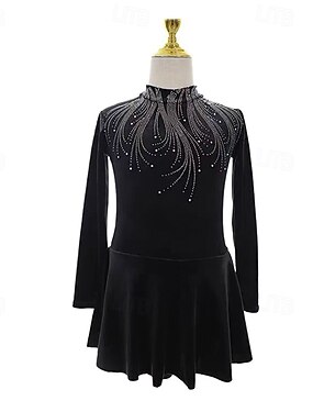 Vestido de patinaje artístico Mujer Chica Patinaje Sobre Hielo Vestidos Negro Espalda Abierta Malla Licra Elástico Entrenamiento Profesional Competición Ropa de Patinaje Mantiene abrigado Cristal