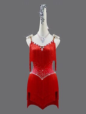 Vestido de baile latino con borlas de diamantes de imitación para mujer, ideal para fiestas, actuaciones, salsa, rumba, competiciones y escenarios.