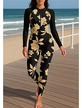 Mujer Regular Camiseta Protección Solar Surf Camiseta de protección solar de cuerpo completo Traje de surf de una pieza Flores Tropical Bloqueo de color Cerrar con sujetador incorporado Cremallera