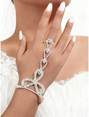 Pulsera nupcial de cadena de mano con diamantes de imitación para mujer con anillo: joyería de boda de cristal brillante para novias y damas de honor. &ocasiones formales