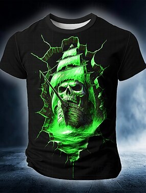 Hombre Cráneos Barco 3D Camiseta Manga Corta Camiseta Impresión 3D Cuello Barco Camisa Exagerado Design Horror Fiesta Calle Festivos Azul Laguna Azul Piscina Naranja Verano Primavera Ropa S M L XL
