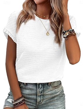 Mujer Tops tejidos con textura Camiseta Bloque de Color Ombre Graphic Elegante Clásico Manga Corta Cuello Barco Escote Redondo Henley Tops regulares Diario Deportes Azul Piscina Morado Verde Trébol