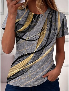 Mujer Camiseta Estampado Graphic Color Camuflaje Elegante Clásico Casual Manga Corta Cuello Barco Escote Redondo Tops regulares Casual Diario Verde Trébol Verano Primavera