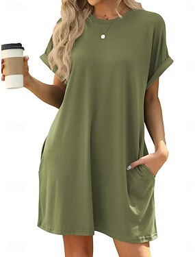 Mujer Mini vestido Vestido estilo camiseta Vestido de cambio Vestido de verano Casual Diario Holgado Plano Manga Corta Cuello Barco Azul Piscina Blanco Rosa Verde Trébol Verano