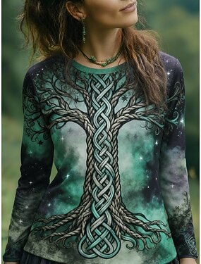 Mujer camisa boho Camiseta Estampado Graphic Bohemia Vintage Casual Manga Larga Cuello Barco Tops regulares Diario Fin de semana Ropa de vacaciones Azul Piscina Verano Primavera Otoño Invierno