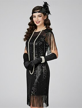 Conjunto Rugido 20s 1920s Hasta la Rodilla Longitud Pequeña Vestido Flapper Accesorios Ropa de Fiesta con accesorios Ilusión Mangas cortas El gran Gatsby Invitado a la boda Lentejuelas Borlas
