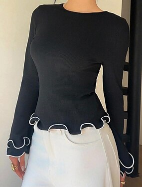 Mujer Camiseta Tee Color sólido Graphic Plano Elegante caliente Clásico Manga Larga Escote Barco Hombros Caídos Tops cortos Diario Noche Gris Verano Primavera Otoño Invierno