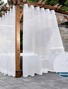 Cortina exterior para patio, cortinas semitransparentes con apariencia de lino blanco, gasa filtrante de luz impermeable, cortinas con ojales exteriores para pérgola, balcón, piscina interior