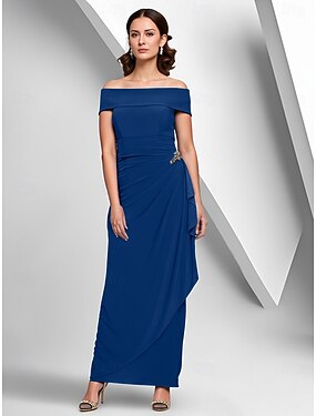Funda Columna Hasta el Tobillo Vestido de raso Vestido Invitada Boda Vestido formal Vestido de Madrina Sin Mangas Cuello Barco Elegante Sencillo Invitado a la boda Festivos Gasa Satén Bolero incluido