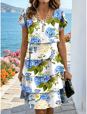 Mujer vestido largo vestido largo Vestido informal Vestido de flores Vestido de verano Moda Moderno Diario Playa Fin de semana Ajuste regular Flor Manga Corta Cuello Barco Blanco Amarillo Azul Marino