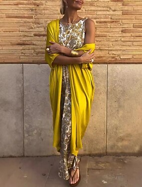 Mujer vestido largo vestido largo Conjunto de vestido Clásico Exterior Vacaciones Festivos Ajuste regular Floral Manga 3/4 Cuello Barco Dorado Otoño