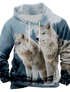 Hombre Lobo Sudadera Moda Elegante Clásico Manga Larga Cuello Barco Exterior Caza Azul Piscina Azul 1 Correa Otoño Invierno Diseñador S M L XL XXL XXXL