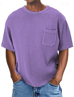Hombre Camiseta de gofre Camiseta Tee Camisa manga corta Manga Corta Cuello Barco Verano Plano Moda Design Básico Bolsillo Vacaciones Calle Noche Azul Azul Marino Morado Camiseta superior para hombre