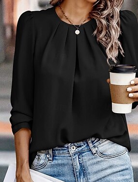 Mujer Camisa Blusa Frunce Plano Activo Casual Manga Larga Cuello Barco Tops regulares Diario Festivos Noche Negro Vino Verde Ejército Azul cielo Verde Trébol Verano Primavera