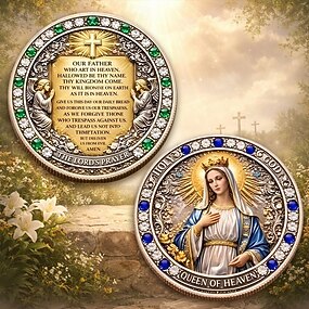 reina del cielo &Moneda conmemorativa de la oración del Padre Nuestro, imagen de la Virgen María, objeto religioso de colección, diseño con versículo bíblico inspirador, regalo para católicos.