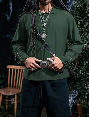 Punk y gótico Medieval Renacimiento Blusa / Falda Traje de cosplay Sayo Guerrero Caballero Vikingo caballero celta Ranger Correa Color sólido Disfraz Hombre Celta Pirata Víspera de Todos los Santos