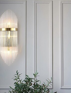 Lightinthebox Aplique de pared de cristal en lámpara de pared transparente y cromada para dormitorio, sala de estar, pasillo, entrada, cocina, guardería 2 luces cableadas 110-240v