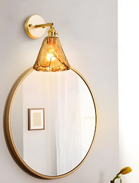 Apliques de pared de latón modernos, apliques minimalistas con pantalla de vidrio color té, lámparas de pared con ajuste de 90° hacia arriba y hacia abajo, 110-240 V
