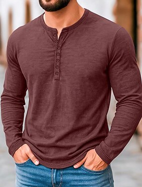 Hombre camisa de la vendimia Henley Shirt camisas retras Camiseta superior Camisa de manga larga Manga Larga Plano Un Color Vintage Moda Básico Prenda teñida Desteñido Puro Henley Casual Vacaciones