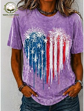Camiseta 100% algodón del Día de la Independencia Americana para mujer impresión gráfica bandera abstracta estilosa básica clásica de manga corta cuello redondo regulares casual diario azul rosa