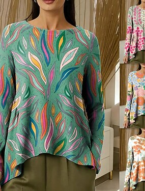 Mujer Sayo Camiseta Floral Graphic Elegante Básico Clásico Manga Larga Cuello Barco Tops largos Diario Rosa Naranja Verde Trébol Beige Primavera Otoño Invierno