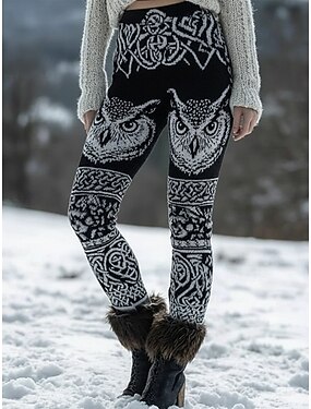 Mujer Polainas Leggings cómodos Vacaciones Vintage Estilo Étnico Longitud total Alta cintura Graphic Animal Búho Estampado Cómodo Elástico Casual Diario Vacaciones Negro Primavera Otoño Invierno