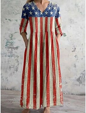 Vestido largo para mujer, de lino y algodón sintético, vestido recto, blanco, informal, básico, para uso diario, para exteriores, vacaciones, corte regular, geométrico, media manga, cuello en V, azul, blanco, amarillo y rosa.