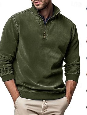 Hombre Sudadera Pull-over Sudadera con un cuarto de cremallera Rojo tinto Negro Verde Ejército Azul Marino Azul Real Cuello Mao Plano Cremallera de un cuarto Deporte Casual Diario Vintage Ropa de