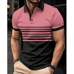 Hombre Camiseta de golf Camisetas polo de golf Trabajo Casual Diseño Manga Corta Básico Moderno A Rayas Botones Verano Ajuste regular Blanco Rosa Rojo Azul Real Verde Trébol Caqui Camiseta de golf