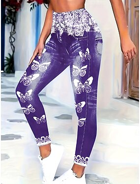 Mujer Polainas Vacaciones Vintage Moda Longitud total Alta cintura Floral Graphic Mariposa Estampado Mantiene abrigado Suave Transpirable Alta elasticidad Casual Diario Vacaciones Violeta Primavera
