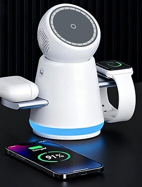 Estación de carga inalámbrica giratoria de 360 grados, soporte de carga múltiple 3 en 1 con luz nocturna, cargador inalámbrico rápido para iPhone 17, 16, 15, 14, 13, 12, iWatch, Samsung Watch y