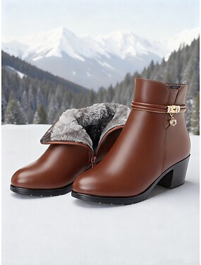 Botines marrones de piel sintética para mujer con cremallera y detalle de pedrería: botines cómodos para invierno, la oficina y el día a día.