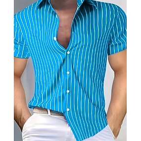 Hombre Camisa de verano Camisa casual Camisa de playa Abotonar la camisa Amarillo Verde Claro Rosa Rojo Azul Piscina Manga Corta Rayas Diseño Vacaciones Hawaiano Ropa Poliéster Moda Casual Cómodo