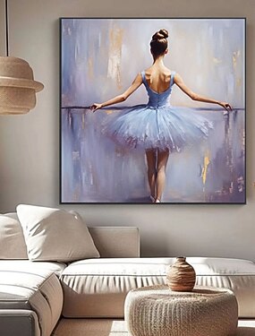 Pintura figurativa abstracta hecha a mano sobre lienzo, arte de pared, pintura al óleo de bailarina de ballet y pintura acrílica, historia de baile, arte moderno, pintura al óleo abstracta