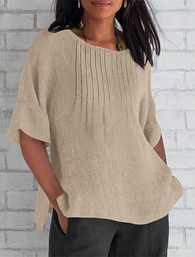 Mujer Camisa Camisas de algodón y lino Blusa Lino de algodón sintético Estampado Geométrico Básico Casual Sin Mangas Cuello Barco Tops regulares Diario Blanco Caqui Gris Verano