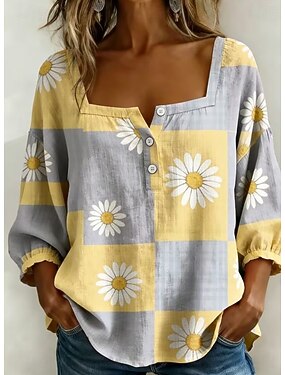 Mardi Gras Mujer Blusa Estampado Floral Graphic Margarita Diario Elegante Casual Media Manga Escote Cuadrado Tops regulares Casual Diario Blanco Amarillo Verde Claro Rosa Beige Verano Primavera