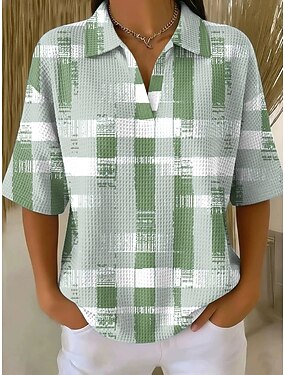 Mujer Camiseta con diseño de gofre Tops tejidos con textura Graphic Geométrico Elegante Vintage Clásico Media Manga Cuello de polo Tops regulares Casual Diario Azul Piscina Amarillo Verde Trébol