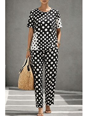 Mujer Conjuntos de lino y algodón Manga Corta Cuello Barco Graphic A Lunares Elegante Bohemia Activo Casual Diario Azul Piscina Negro Naranja Verano Ajuste regular