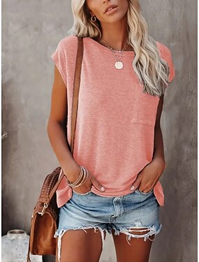 Mujer Blusa Bolsillo Plano Vintage Elegante Sin Mangas Cuello Barco Tops regulares Diario Festivos Noche Negro Amarillo Rosa Morado Verde Trébol Verano Primavera