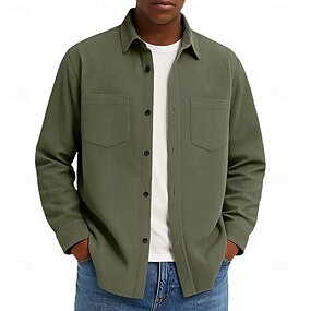 Hombre Camisa Camisa de Pana Abotonar la camisa Azul Piscina Verde Ejército Beige Manga Larga Plano Cuello Vuelto Casual Diario Bolsillo Ropa Algodón Moda Ropa de calle Clásico Casual