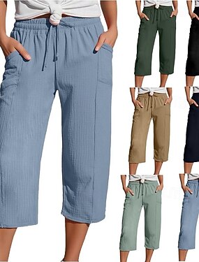 Hombre Shorts capri cargo Pantalones cortos de lino Pantalones cortos de verano Pantalones cortos de playa Correa Cintura elástica Multi bolsillo Plano Comodidad Transpirable Longitud de la rodilla