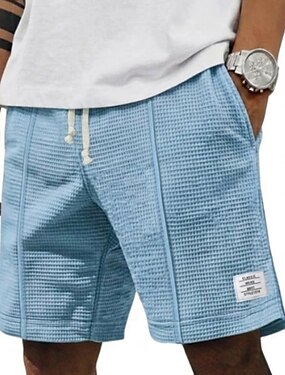 Hombre Pantalones cortos de gofres Pantalón corto Pantalones cortos casuales Pantalones cortos texturizados Bolsillo Cintura elástica Plano Comodidad Transpirable Longitud de la rodilla Casual